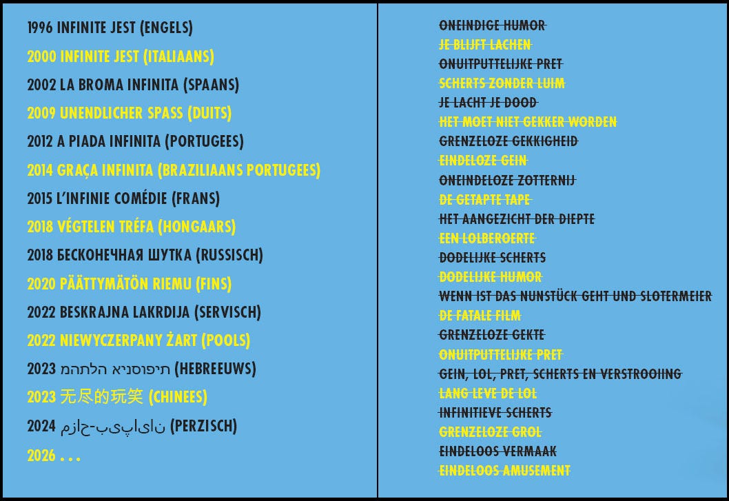 Nog drie weken te gaan. Vandaag geven we graag het woord aan de allereerste die de Nederlandse vertaling las: de vertaler. Toen Robbert-Jan Henkes werd benaderd om Infinite Jest te vertalen, was zijn eerste reactie: ‘Wil je me dood hebben?’ Het bleek inderdaad een monsterklus – op zijn eigen blog schreef hij al over de oneindige (on)mogelijkheden bij het vertalen van de titel alleen al –, maar geen zorgen: hij heeft het overleefd. Alleen: toen kwamen de boeken binnen…